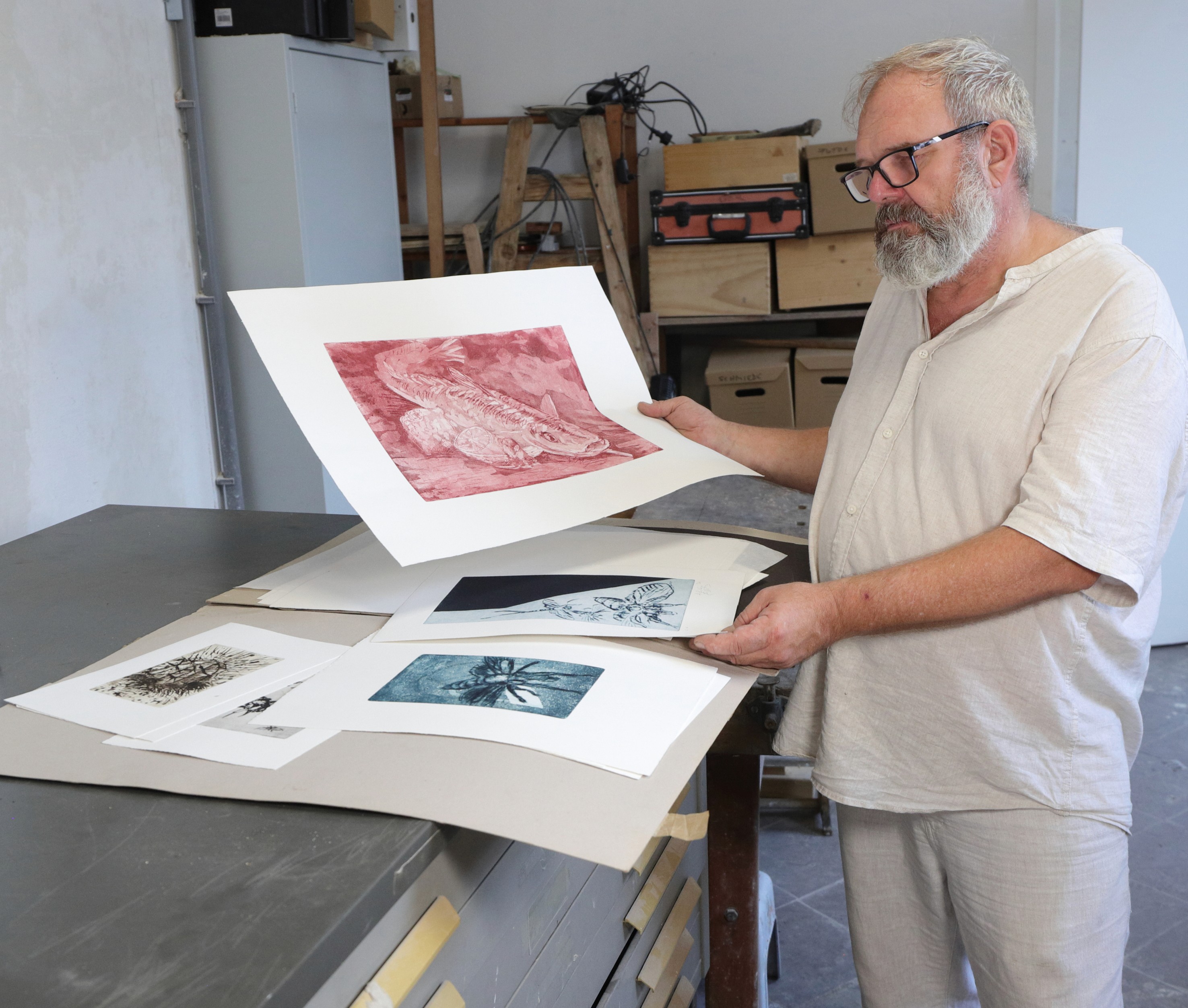 Ich bin Herwig Geroldinger, ein vielseitiger Künstler, der sich vor allem der Malerei und auch der Druckgrafik zuwendet. Genaue Beobachtung geht dem Schaffensprozess voraus. Ich male am liebsten nach der Natur. Ich bevorzuge Originalmotive, die ich direkt vor mir habe, oder arbeite aus der Vorstellung meist ohne Vorzeichnung. Der Gehalt des Bildes erschließt sich dem Betrachter aufgrund des groben Farbauftrags erst in einer bestimmten Distanz. Geschönte, fotorealistische Malerei passt nicht zu meinem Wesen. Als ein Mensch, der sich seit seiner Kindheit mit der Natur intensiv auseinandersetzt, erschreckt es mich umso mehr, die Veränderung meiner Umgebung wahrzunehmen. Um auf die Zerstörung der Lebensräume und auf das Verschwinden der Arten künstlerisch zu reagieren, braucht es – meiner Meinung nach -eine andere Bildsprache, als hübsche und ruhige Bilder zu malen. Dieser Zerstörung der Umwelt kann ich in meiner Malerei nur heftiger Expressivität entgegensetzen.