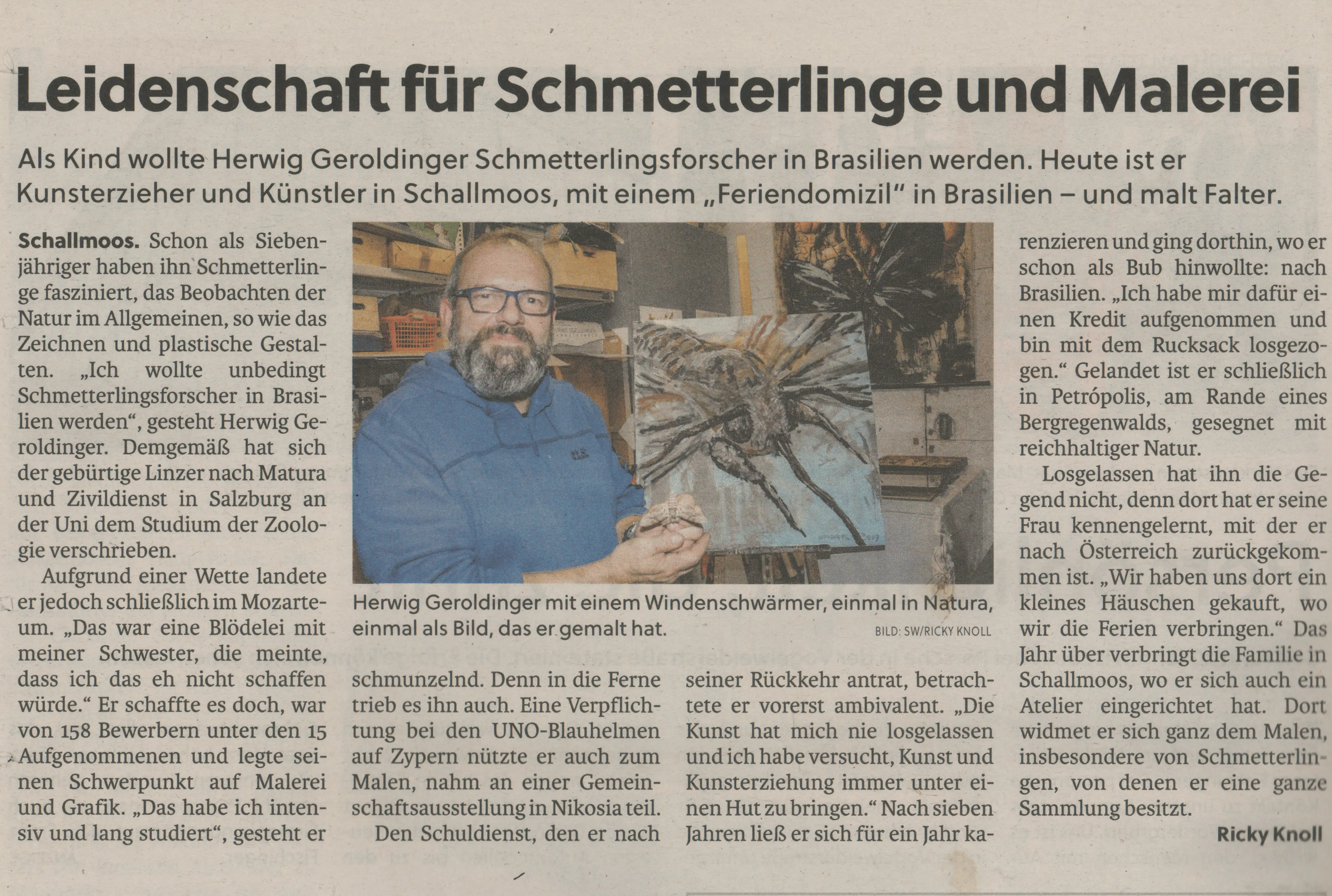 Nach anfänglichem Studium der Zoologie absolvierte ich das Kunststudium in Salzburg am Mozarteum und widmete mich gänzlich der Malerei und Grafik. Mit zupackendem, ausdruckstarkem Pinselstrich entstanden unter anderen verschiedene Serien über Kakteen, Fische und Insekten, die ich in vielen Galerien im In- und Ausland zeigen konnte. Auf die reine Abbildung kann ich mich nicht mehr beschränken, ohne auf das erschreckend rasch voranschreitende Artensterben mit meinen Bildern aufmerksam zu machen. Als forschenden Maler besuchte ich den südamerikanischen Urwald und Brasilien wurde mir zur zweiten Heimat. Die meiste Zeit verbringe ich in Salzburg, wo ich auch mein Atelier eingerichtet habe.