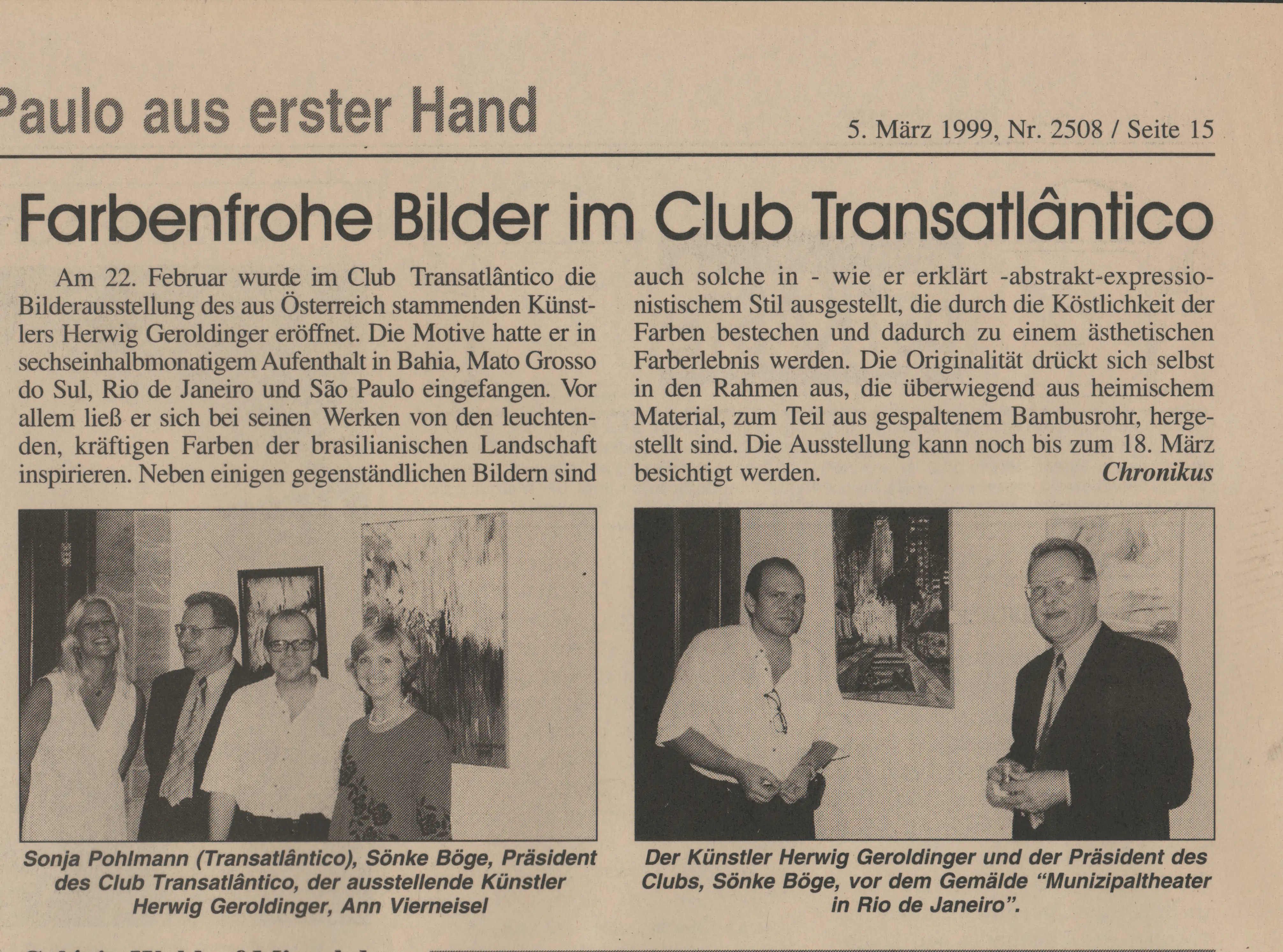 Club Transatlantico, São Paolo, Brasilien Centro di Cultura Raul de Leoni, Petropolis-Rio de Janeiro, Brasilien Kunstinitiative KNIE, Oberndorf